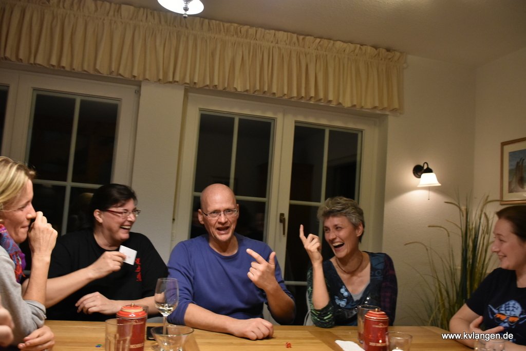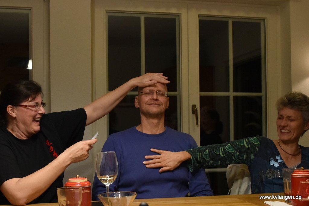 Anja vom hiesigen Karateverein hatte sich um alle Hallenprobleme gekümmert. Musste uns aber schon am Donnerstag verlassen. Zum Dank bekam sie eine Danke-Schokolade.