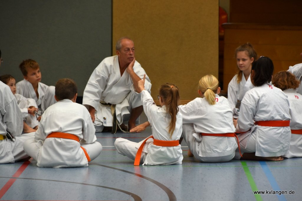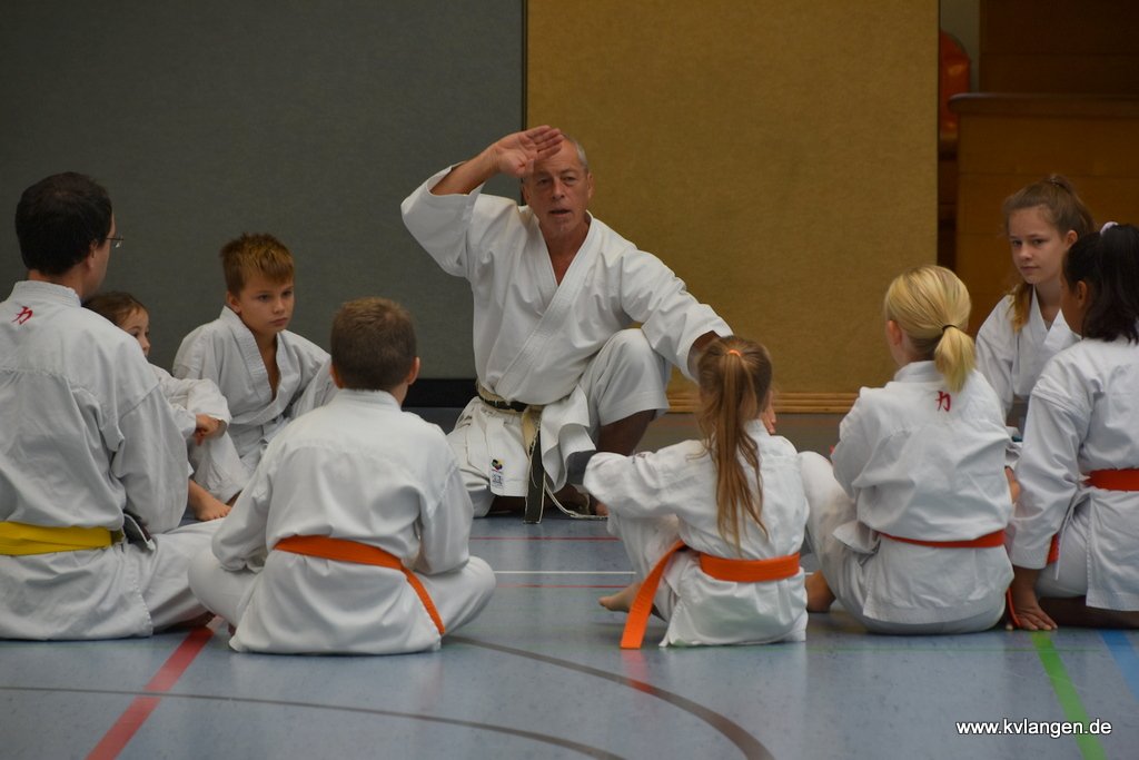 Bei der Unterstufe ging es um Zwei-Armtechniken und Techniken mit der offenen Hand. Na - welche Kata wird da wohl dran kommen?